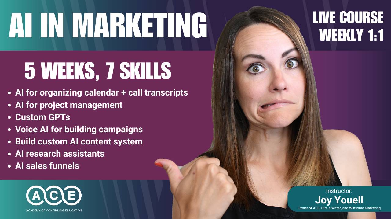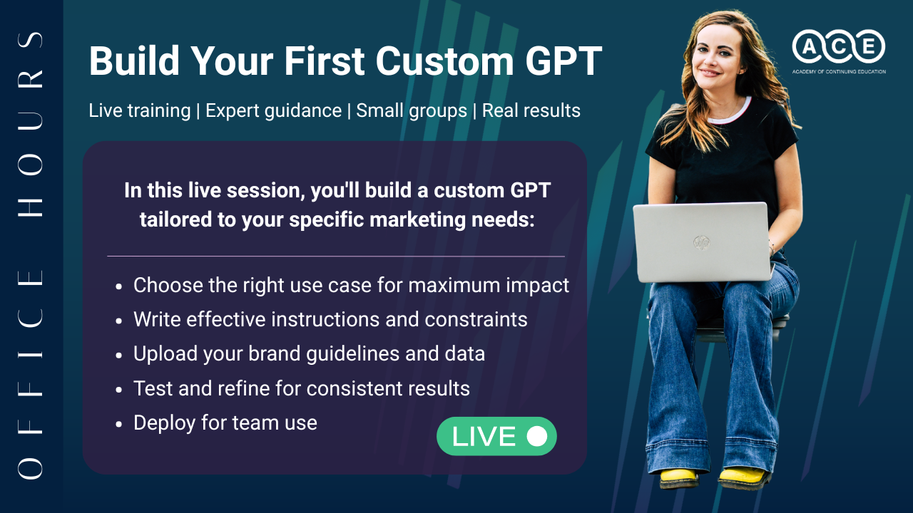 Join live, expert-led training sessions focused on specific AI marketing topics like building custom GPTs, managing schedules with AI, and creating automated workflows, with real-time Q&A and hands-on practice in small groups.